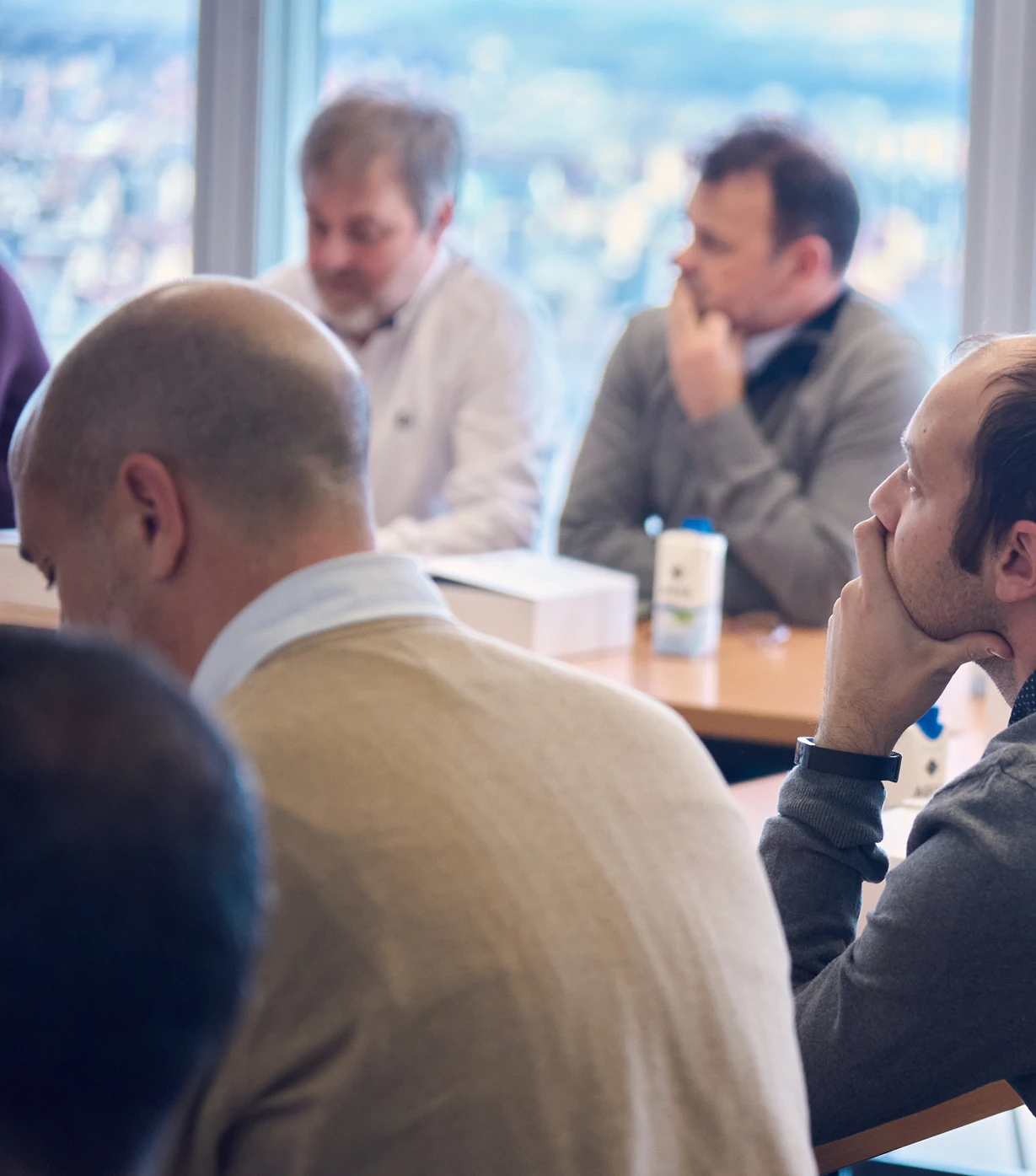 Tras esta intensa dinámica, hicimos una pausa para el café. El escenario era inmejorable, desde la planta 51 de la Torre Emperador, Madrid se extendía a nuestros pies con su inconfundible silueta y atardecer. Una vista que invitaba a la reflexión y nos recordaba la magnitud del sector en el que trabajamos y la importancia de verlo con perspectiva. El ambiente en esta pausa fue especial. Sin prisas, sin formalismos, las conversaciones fluían de manera natural.