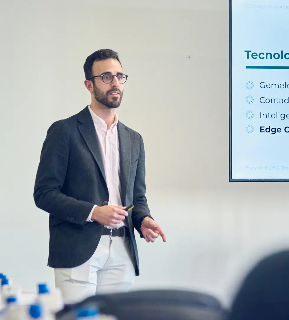 Una vez Pablo analizó los escenarios y los cambios a los que nos enfrentamos en los próximos años, Domingo fue el encargado de poner encima de la mesa los servicios y soluciones de Gridfy.